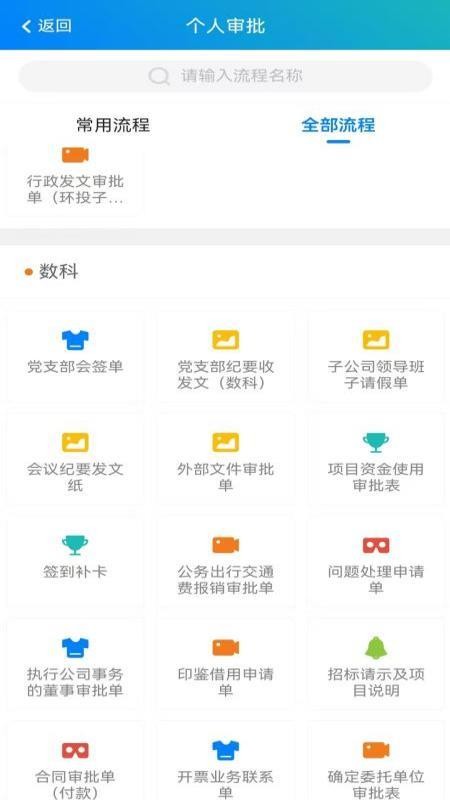 强大且智能的搜索功能,输入对应流程审批名称可快速找到,方便用户查看;