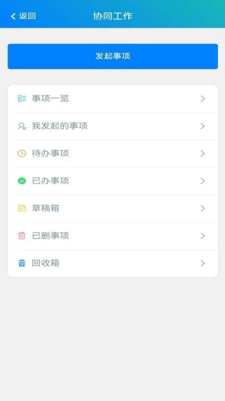 5、进入协同工作页面,可在线轻松发起事项,还能管理所有待办和草稿箱事项;