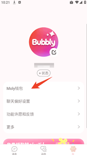 4、接着就可以在Bubbly app查看同步过来的Moly钱包,以及AI角色信息