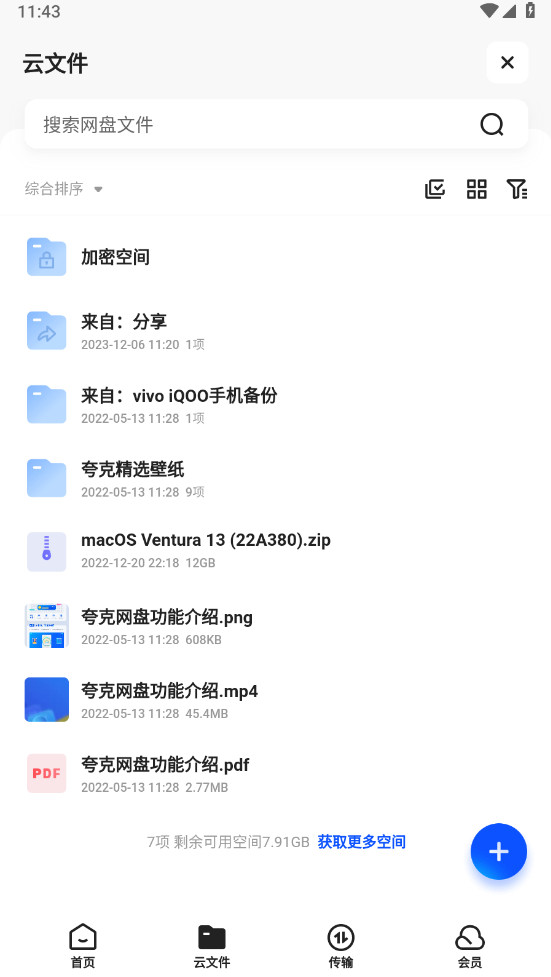 文件上传:便可上传文件,也能上传文件夹,拥有批量上传、断点续传,也能拖拽文件开启上传。