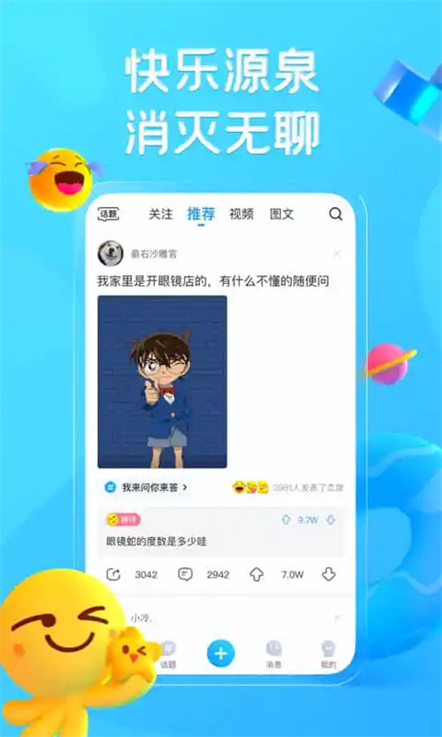 【形式多样】10000000+ 文字、视频、图片 任你选择。超火爆的神帖、超搞笑的GIF图,笑到腹肌长粗来。