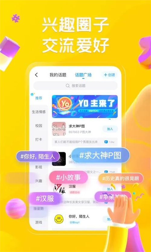 找到或者创建自己喜欢的话题,#过年回家最怕被问的问题#?#隔壁老王#?话题聚友,找到属于自己的圈子。