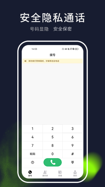 3、安全隐私通话:号码显隐,安全保密。