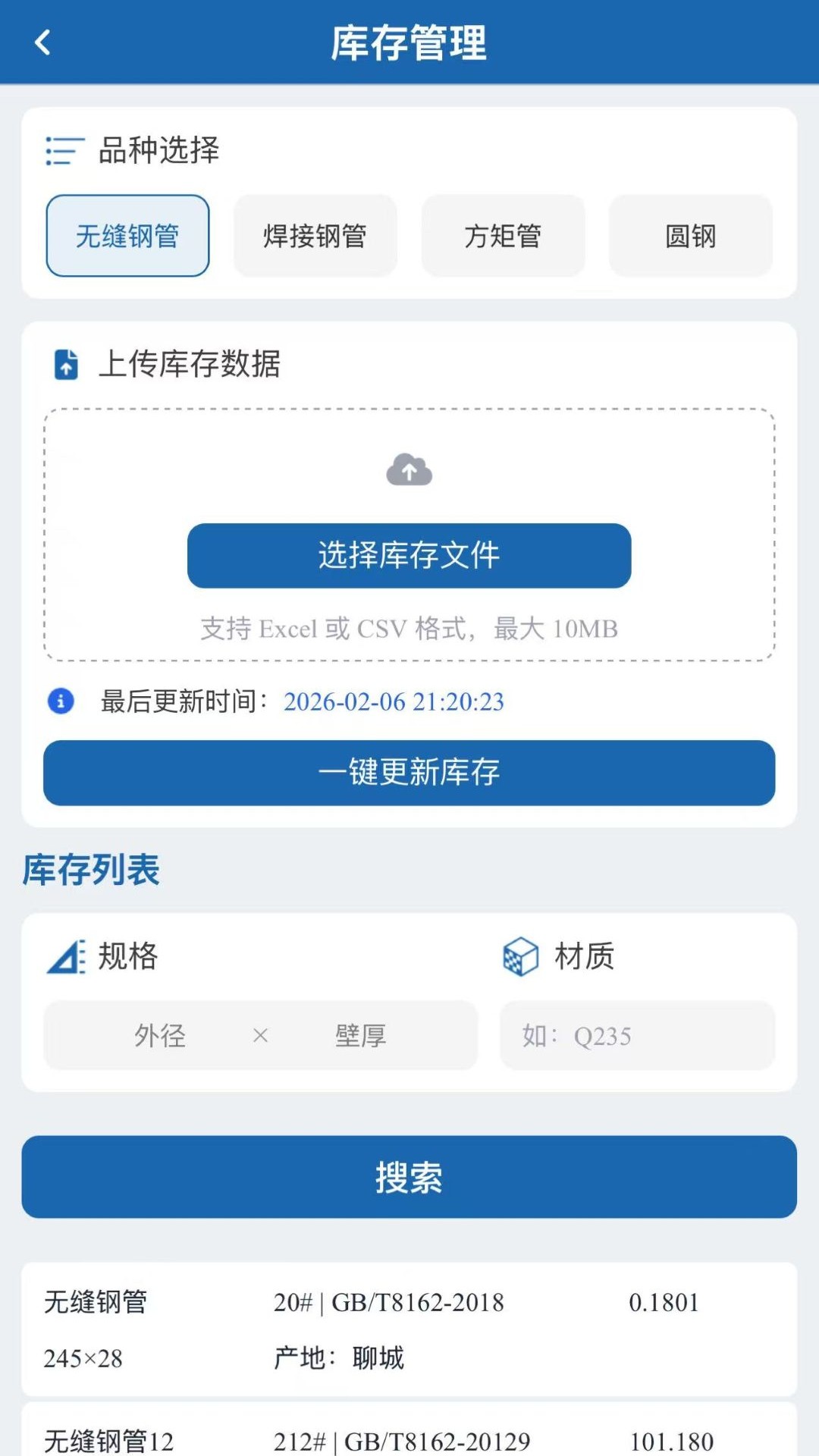 本应用汇聚全国多家钢管供应商及库存商实时上传的现货资源,用户可通过外径、壁厚、钢号、生产厂家等多维度条件快速检索所需钢管库存信息。
