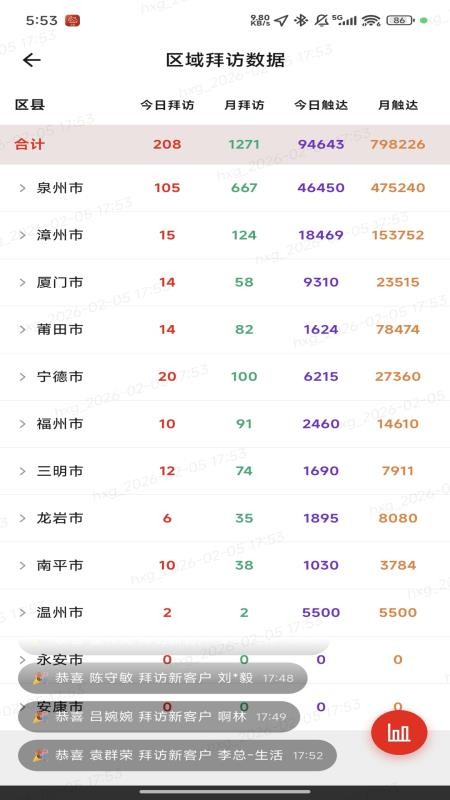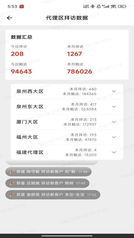 将代理区的客户拜访数据全面统计展示,用户可以在线查看了解代理区的拜访数据信息。