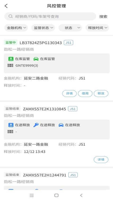 便捷的筛选功能,可通过筛选金融机构、监管状态、释放时间查询车辆;