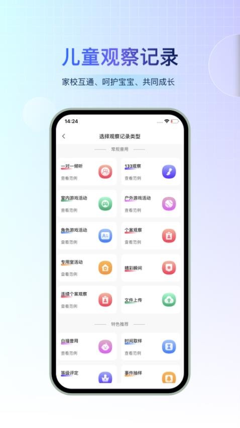 这里对儿童到手校园生活学习情况都能够详细的观察,就可以记录多种类型的观察,分类记录。