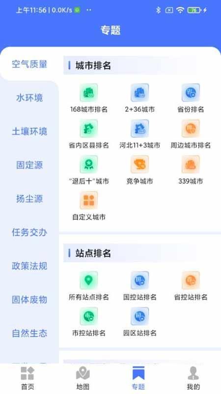 汇集诸多专题类型,覆盖空气、水、土壤、固体废物等,可在应用中全面阅览;