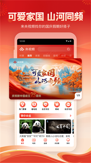 为用户提供中央广播电视总台电视直播和移动视频直播,也将呈现入驻社会账号发起的精彩直播内容。