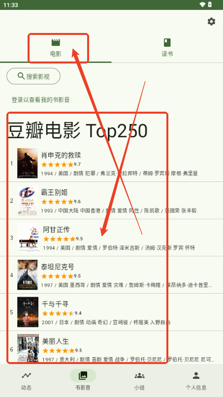 2、进入软件后我们就可以看到关于豆瓣电影的一些内容和评分;