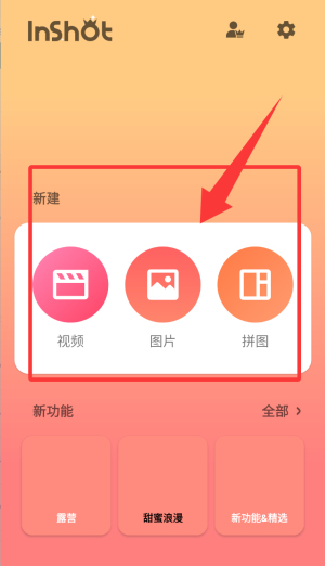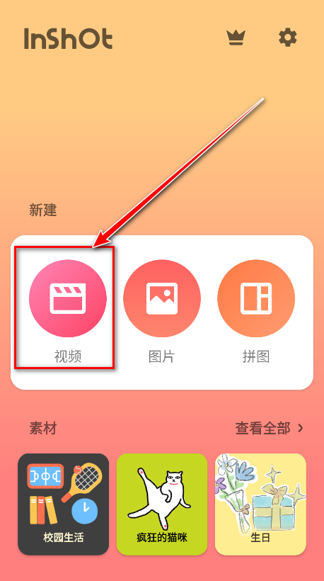 1.打开inshot,点击新建下面的视频。