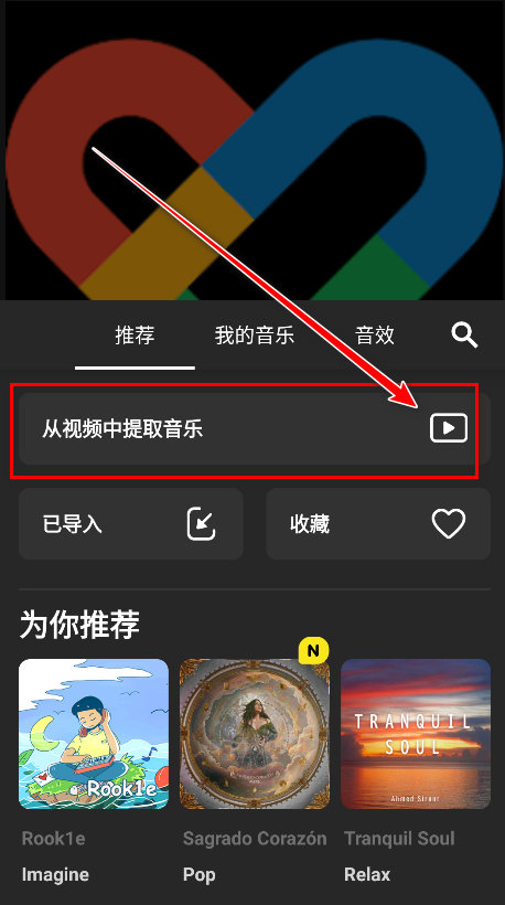 8.点击从视频中提取音乐后面的播放图案。