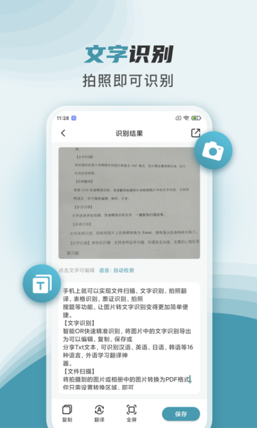 提供多国语言相互翻译,识别翻译保存和复制方便;