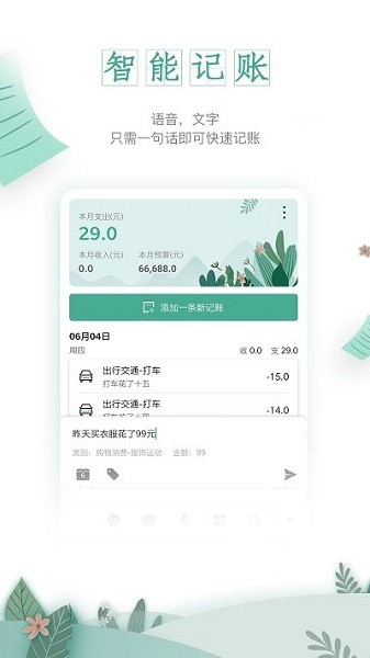 语音记账、一句话文字记账、自动记账、模板记账、周期记账、桌面快捷记账、手动记账,只为记账而生