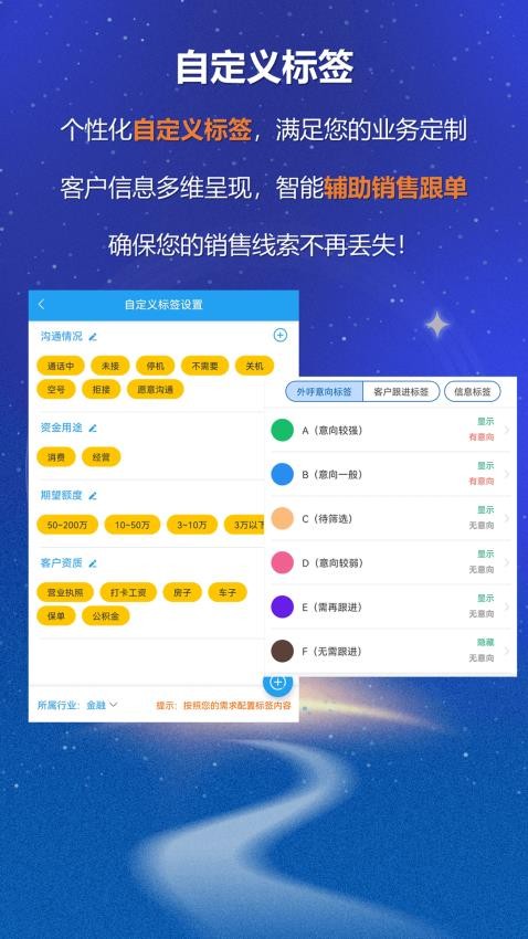 1、在软件中用户可以自定义标签对客户信息通过标签分类管理;