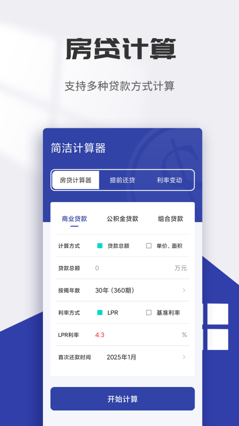 1、简单实用的房贷计算工具都可选择,轻松计算房贷。
