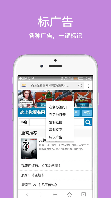 在任何网站发现广告都可以标识广告,并上传给运营人员,玖玖浏览器有专人处理这个广告,在您下次访问的时候拦截广告,保证您的上网体验。同时玖玖浏览器的其他用户也可以享受到您的广告标识带来的收益,顺利拦截广告,不受该广告的困扰。