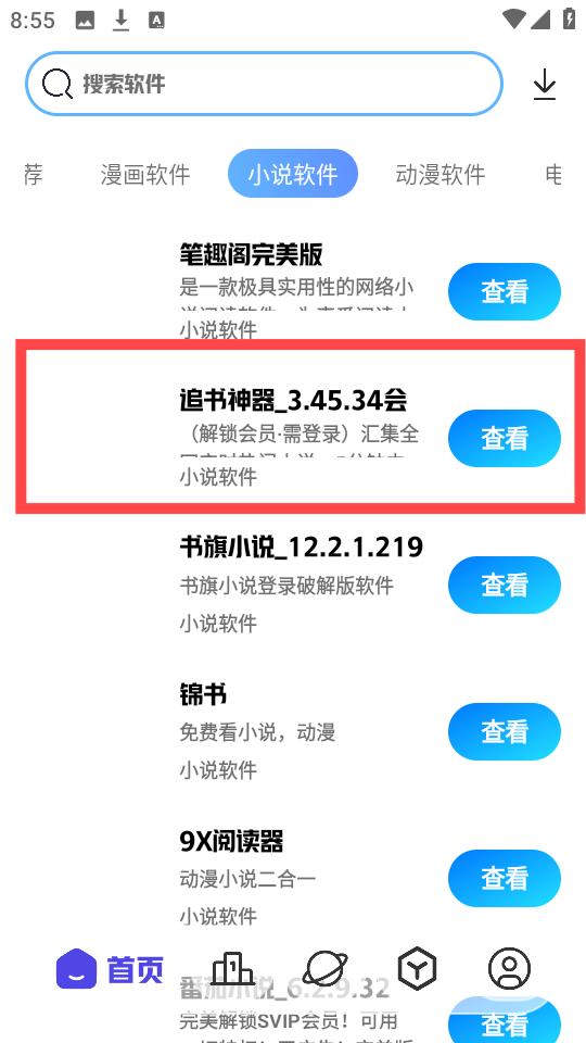 3、接着根据你的需求,选择一款应用进行下载,这里小编以【追书神器】为例,点击【查看】