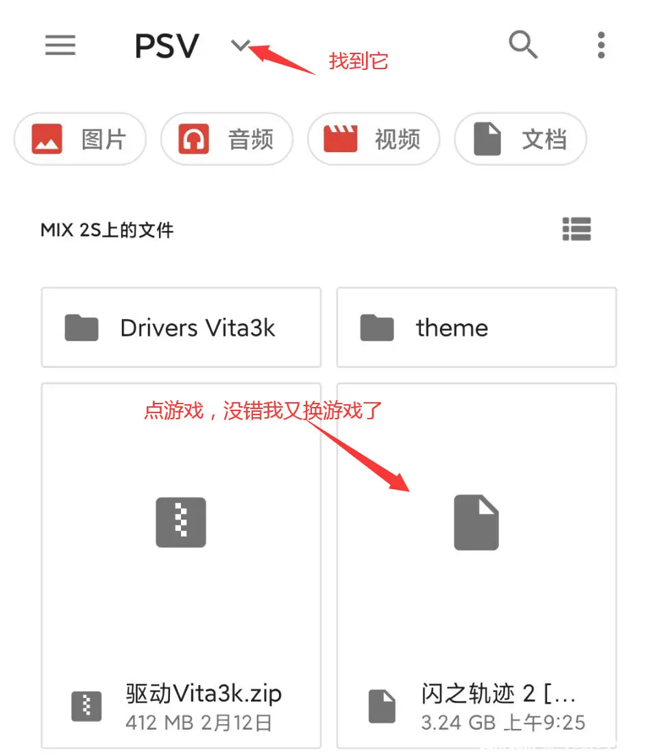 1、将你下载的游戏,移动到PSV文件夹,这步没必要做,只是为了方便。
