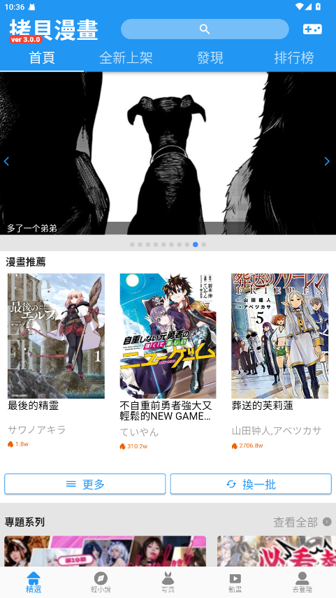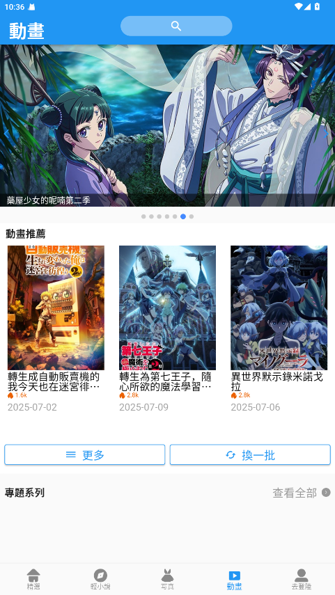 5.在底部菜单栏可切换“精选”“轻小说”“动画”板块。
