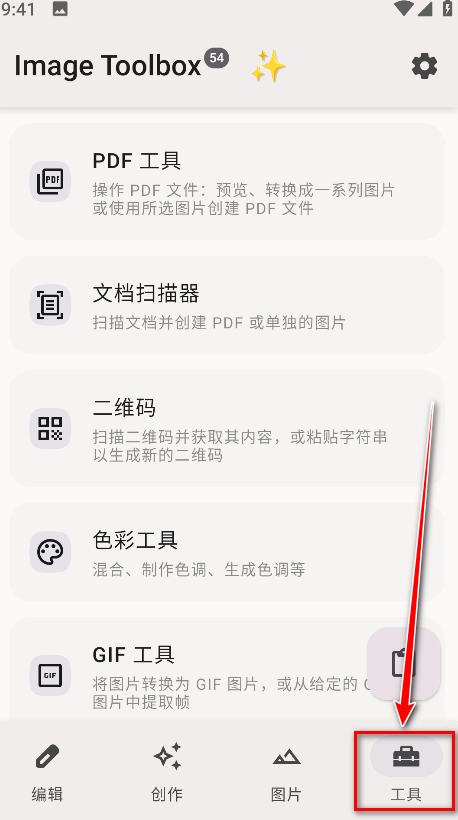 4.点击工具,会看到有PDF工具、文档扫描器、色彩工具、GIF工具等等功能。
