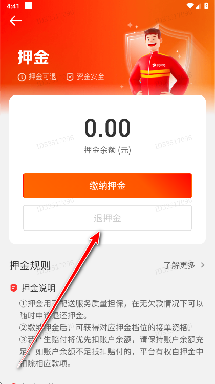 3.点击押金。
