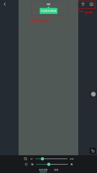 4、上方可切换清晰度及打开手电筒功能。