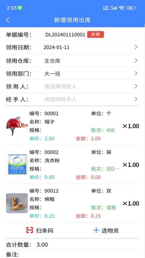 2、用户可以将领用的物资商品进行出库记录,记录商品的出库信息;
