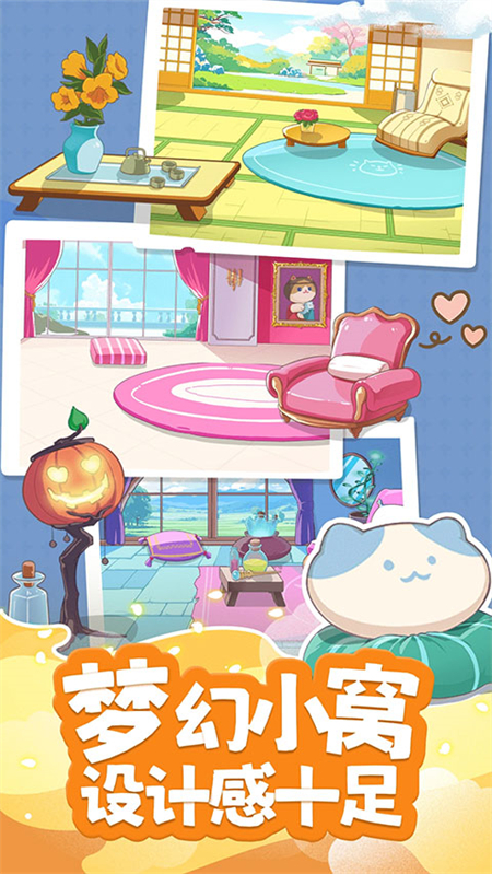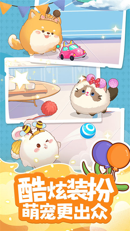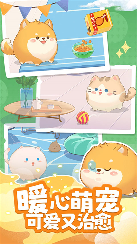 猫、狗、兔子、团团、布偶5种可爱萌宠任你挑选,每种萌宠都有自己独一无二的性格,以及专属动画。活泼好动的黄小柴,可爱粘人的花小喵。喜欢运动的蹦蹦兔,古灵精怪的团团。在这里你可以挑选自己喜欢的宠物,并和他们一起成长玩耍。