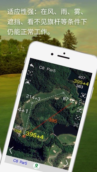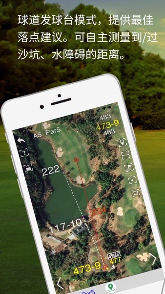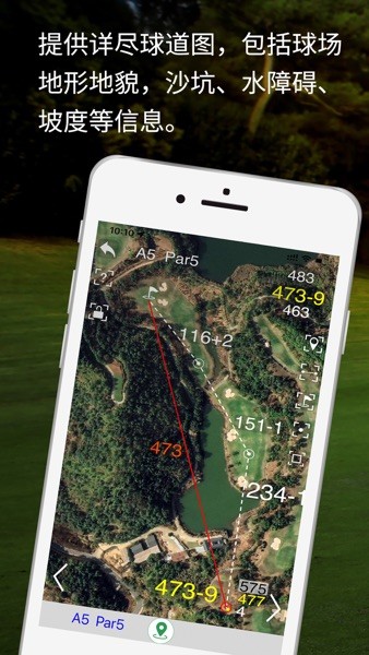 该应用还提供清晰、详尽的球道地形、地貌实景图,帮助球手更好地规划球道策略。