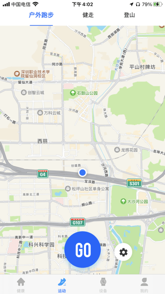 手表还支持涉及地图和轨迹的各种运动,包括健走、跑步、骑行和登山。您可以记录您的运动活动,并在应用程序中查看相关的运动轨迹和统计数据。