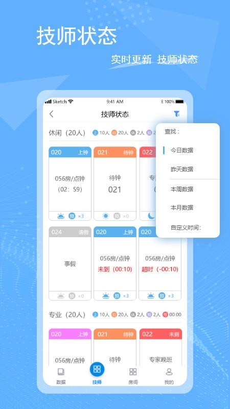 4.技师状态实时更新:提供技师状态的实时更新,让管理者了解技师的工作情况。
