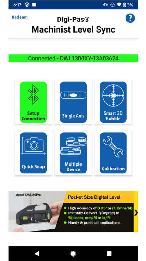 迪派士(Digi-Pas)机械水平应用程序,专门设计用于该品牌最新的2轴数字机械水平仪结合使用。用户可以充分利用远程无线蓝牙移动连接,立即使他们能够执行远程2轴同时校准任务与角度测量。