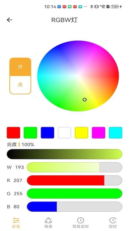 对灯光效果进行调节,可以自由的调整灯光亮度、颜色,还可以切换不同的效果;