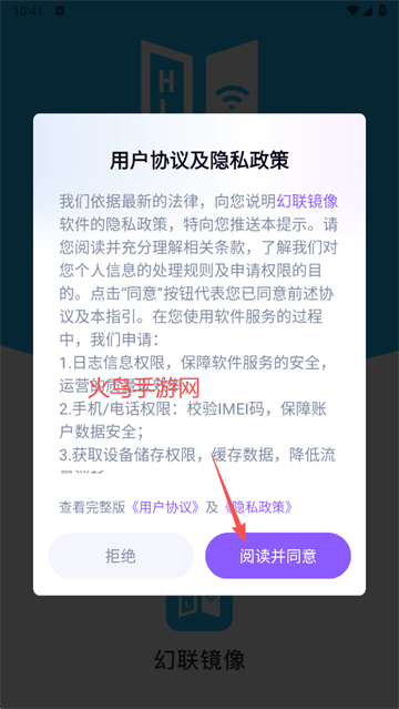 在本站下载幻联镜像app,打开,点击同意