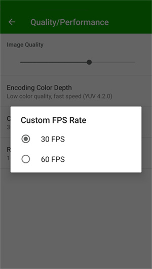5、点击quality/performance可以修改画质和性能,用户可以根据设备状况切换帧数,软件提供30、60FPS。