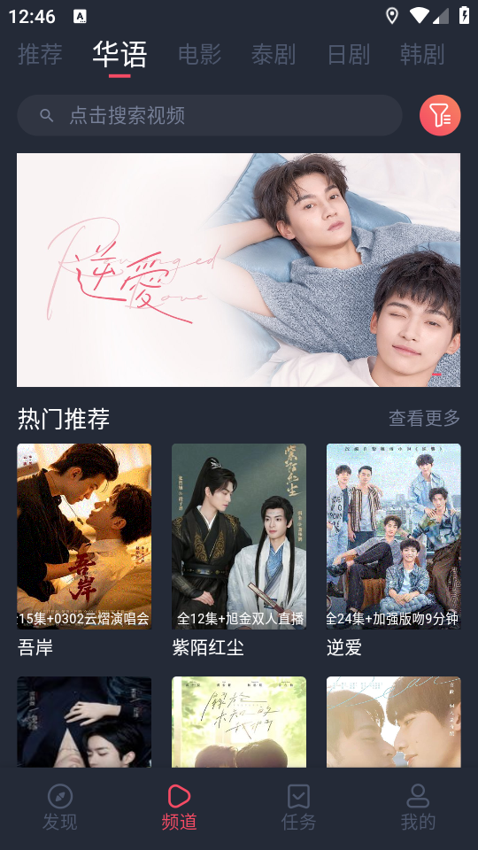 1、打开软件,频道会自动推荐一些影片给你;