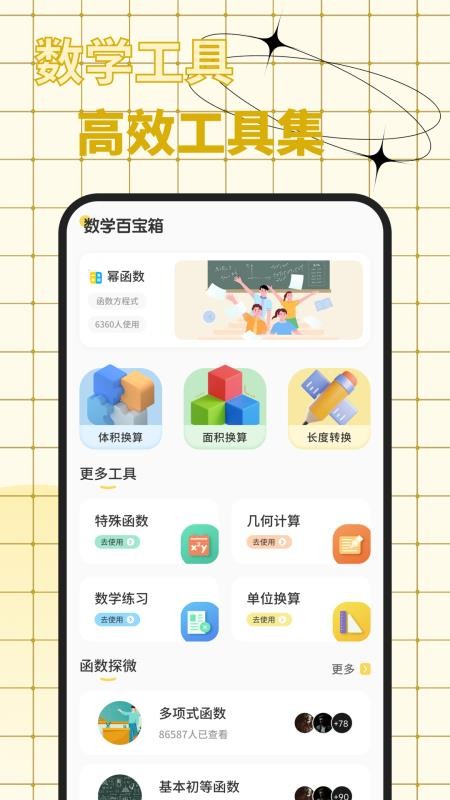 更有体积换算、几何计算、函数学习等实用数学工具,满足进阶学习需求。