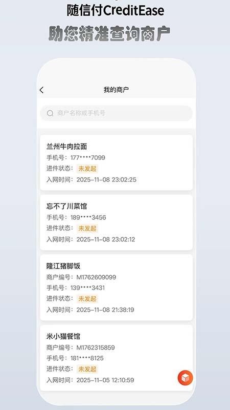 可帮助用户高效管理全部的商户信息,方便用户随时查询商户信息;