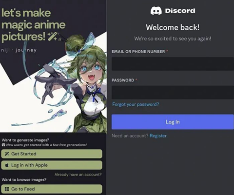 登录您的帐户开始使用新帐户或直接使用您的Discord帐户登录,帐户和订阅计划可以与现有的NijiJourney和Midjourney帐户同步