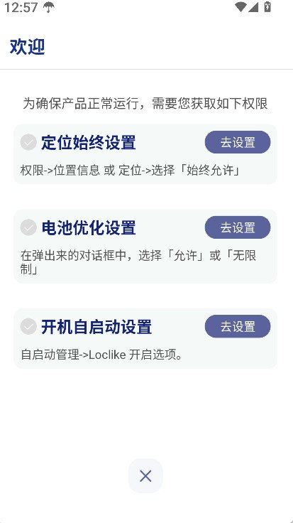 1、注册成功后需要先开启定位功能,确保系统能够正常记录与追踪位置信息。