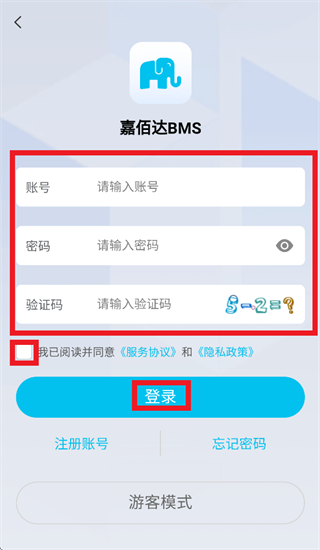 用户使用注册的手机号,密码,输入验证码,勾选我已阅读并同意《服务协议》和《隐私政策》,点击登录即可