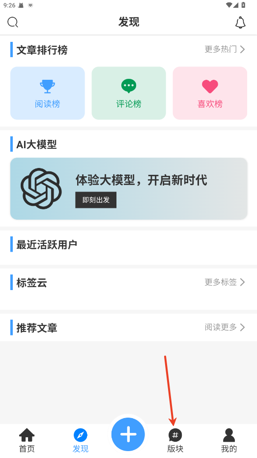 1.下载并打开app,点击【版块】