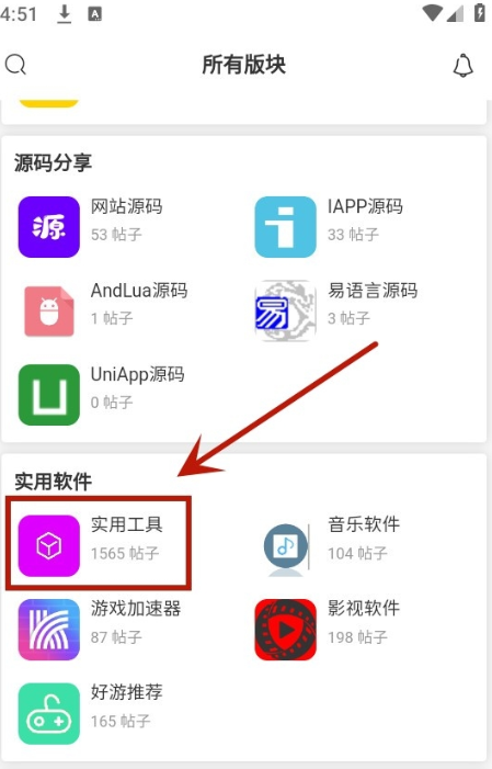 2.往下滑动,找到你需要的资源进行下载,比如点击【实用工具】