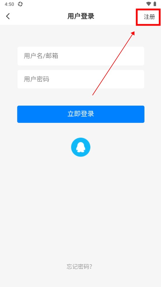 右上角点击注册