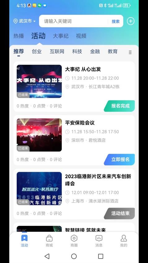 1、打开应用就可以对推荐的企业活动进行查看,轻松报名。