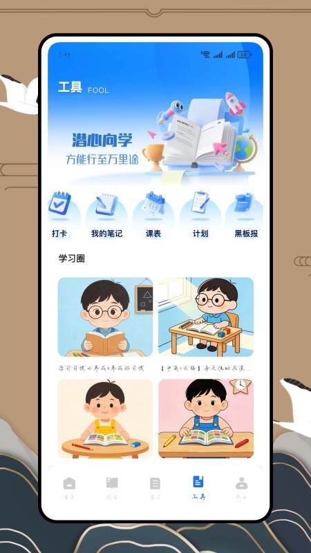 软件中提供了专属的学科工具,可以有效实现打卡学习、记录笔记、自定计划等,便捷选择工具进行使用。