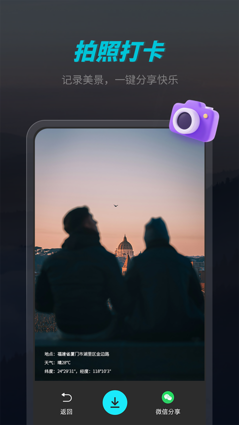 旅行必备的海拔指南针,随时掌握方向,并可获取当前位置的实时气压、高度、经纬度等信息