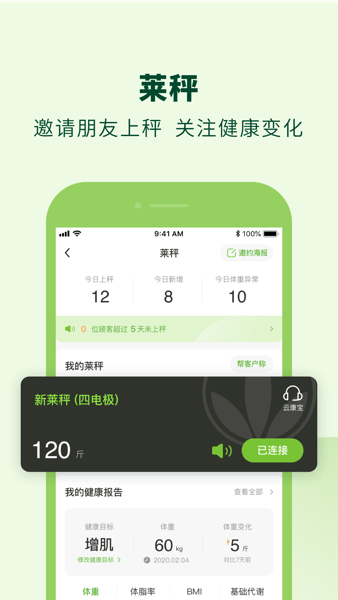 - 管理体重,监测包含脂肪含量在内的17项身体健康指数