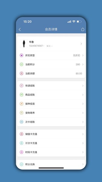 会员查询,会员办卡,会员充值,会员充次,积分兑换...